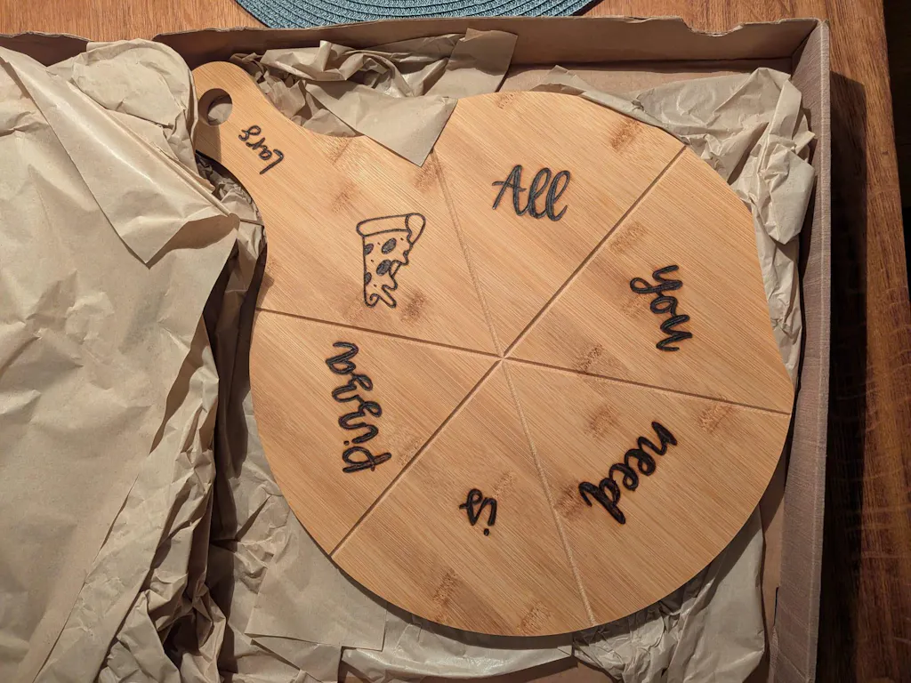 Jedes Pizzabrett wird in einem Pizzakarton verschickt.